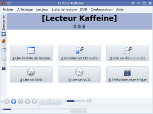 Ensuite, on va dans le menu "multimédia" et on lance Kaffeine. Dans le menu, un nouveau sous-menu est apparu "DVB" tandis qu’un gros bouton "Télévision Numérique" vous saute aux yeux.