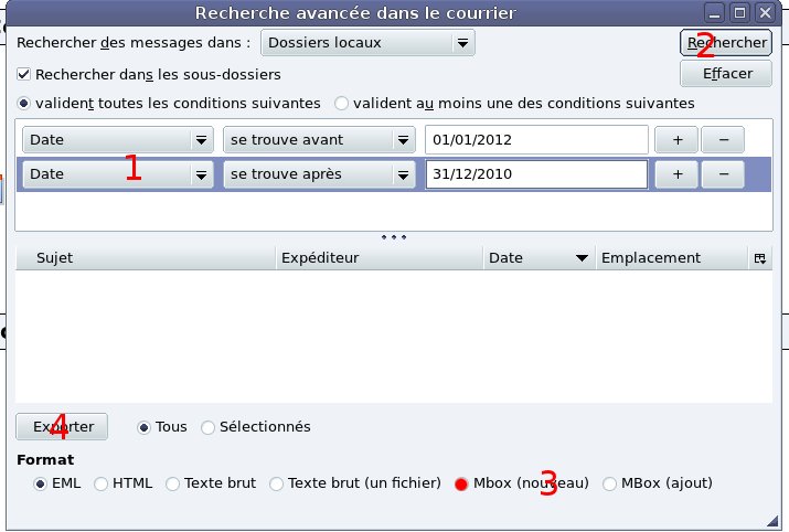 - sélectionner le format « mbox(nouveau) »