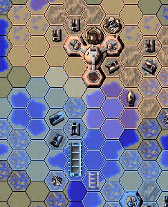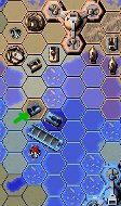 Après cette capture, il s’ensuit une très lente agonie de l’astronef de Xovooth. En effet, je conserve la plupart du temps le maximum de points de déplacement pour profiter de la moindre opportunité. Les deux voisins de Xovooth se limitent à des coups d’attente.