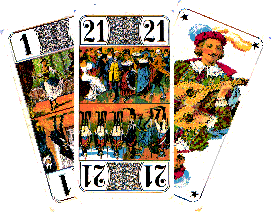 Au nombre de 21, ils sont numérotés et comportent des scènes de la vie quotidienne du 18ème siècle. Evidemment, la carte la plus forte est le 21. La plus vulnérable est le 1. Ces deux cartes particulières associées à une autre (l’excuse, " joker " non numéroté) sont appelés les bouts (ou oudlers).