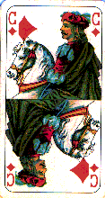 Le cavalier est un perturbateur classique pour les joueurs débutants. Situé entre le valet et la dame, il vaincra le valet et toutes les cartes basses... surtout quand vous aurez oublié son existence !
