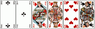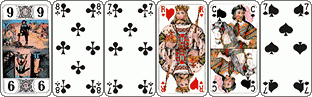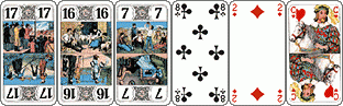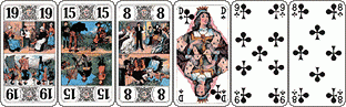 Les cinq trèfles et le 10 de coeur vont dans le chien sans qu’il soit nécessaire de réfléchir. On annonce la poignée... et le chelem en priant le Dieu de la probablilité pour que le 15 ne soit pas sixième et qu’un défenseur n’ait pas 5 piques !